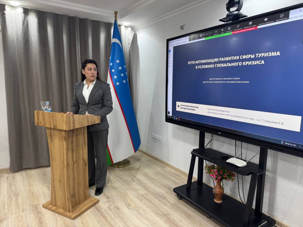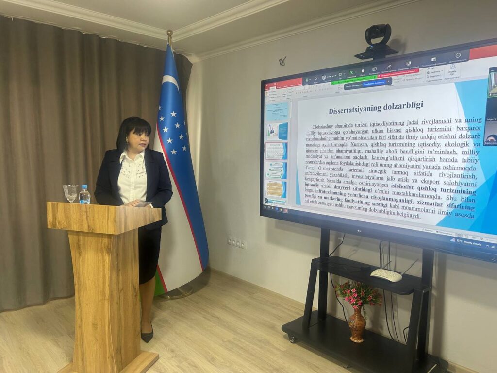 🔹Xallakova Barnoxon Bahodirjonovnaning “Пути активизации развития сферы туризма в условиях глобального кризиса” hamda Agzamova Nargiza Gapurovnaning “Qishloq turizmini rivojlantirishning tashkiliy-iqtisodiy mexanizmlari (Toshkent viloyati misolida)” mavzularidagi ilmiy ishlari 08.00.17 – Turizm va mehmonxona faoliyati ixtisosligi bo‘yicha iqtisodiyot fanlari bo‘yicha falsafa doktori (PhD) darajasini olish uchun muvaffaqiyatli himoya qilindi.