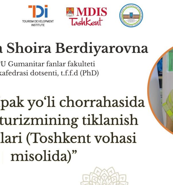 Mazkur ma’ruzada Buyuk Ipak yo‘li tarixiy-madaniy merosi doirasida ziyorat turizmining qayta tiklanish jarayonlari ilmiy asosda tahlil qilinadi. Xususan, Toshkent vohasining tarixiy ziyorat maskanlari, ularning shakllanish bosqichlari hamda zamonaviy ... Read More