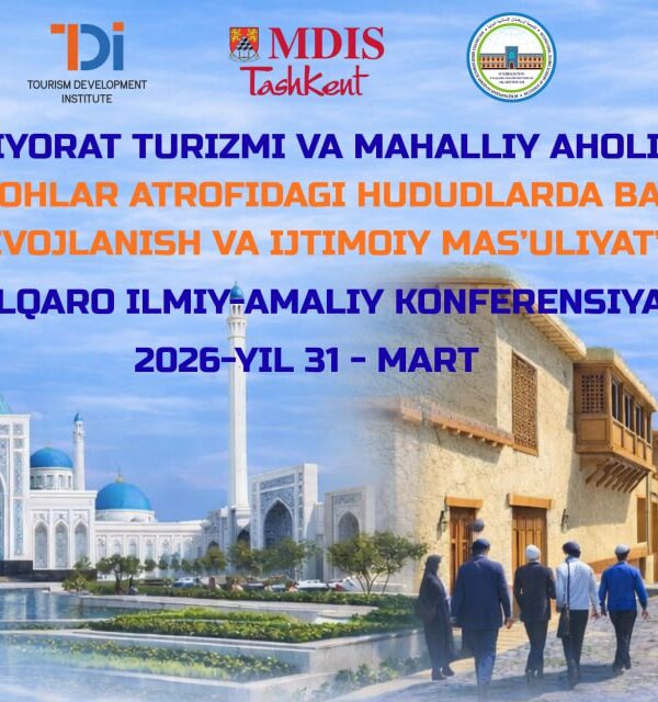 🔹2026-yil 31-mart kuni Turizmni rivojlantirish ilmiy-tadqiqot instituti tomonidan Toshkentdagi Singapur menejmentni rivojlantirish instituti hamda Oʻzbekiston xalqaro islomshunoslik akademiyasi hamkorligida “Ziyorat turizmi va mahalliy aholi: ziyoratgohlar atrofidagi hududlarda barqaror ... Read More