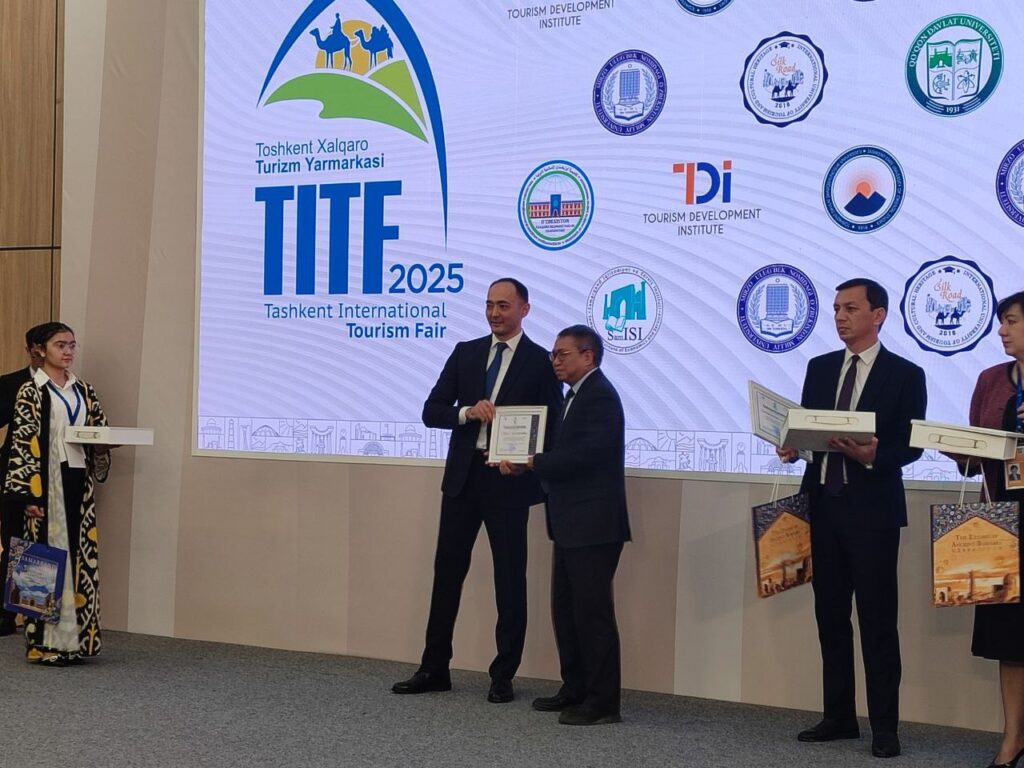 🔹Bugun TXTY-2025 doirasida birinchi bo‘lib «Turizmni ilmiy va ma’rifiy rivojlantirish bayroqdorlari» nominatsiyasi g‘oliblari bo‘lgan turizmni rivojlantirish tashkilotlari va ilmiy maktablarini taqdirlash marosimi bo‘lib o‘tdi. Marosimni O‘zbekiston Respublikasi Turizm qo‘mitasi raisi o‘rinbosari Sardor Muxtorovich Niyazov ochib berdi.